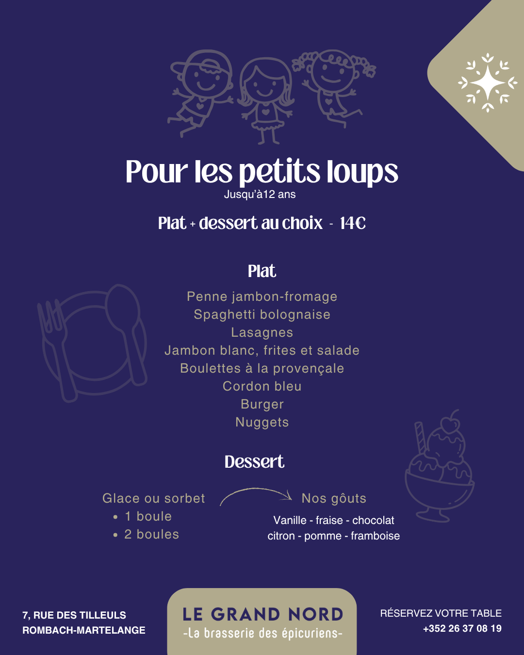 SERVICE DU MIDI : 12H00 – 14H00 • SERVICE DU SOIR : DÈS 18H00