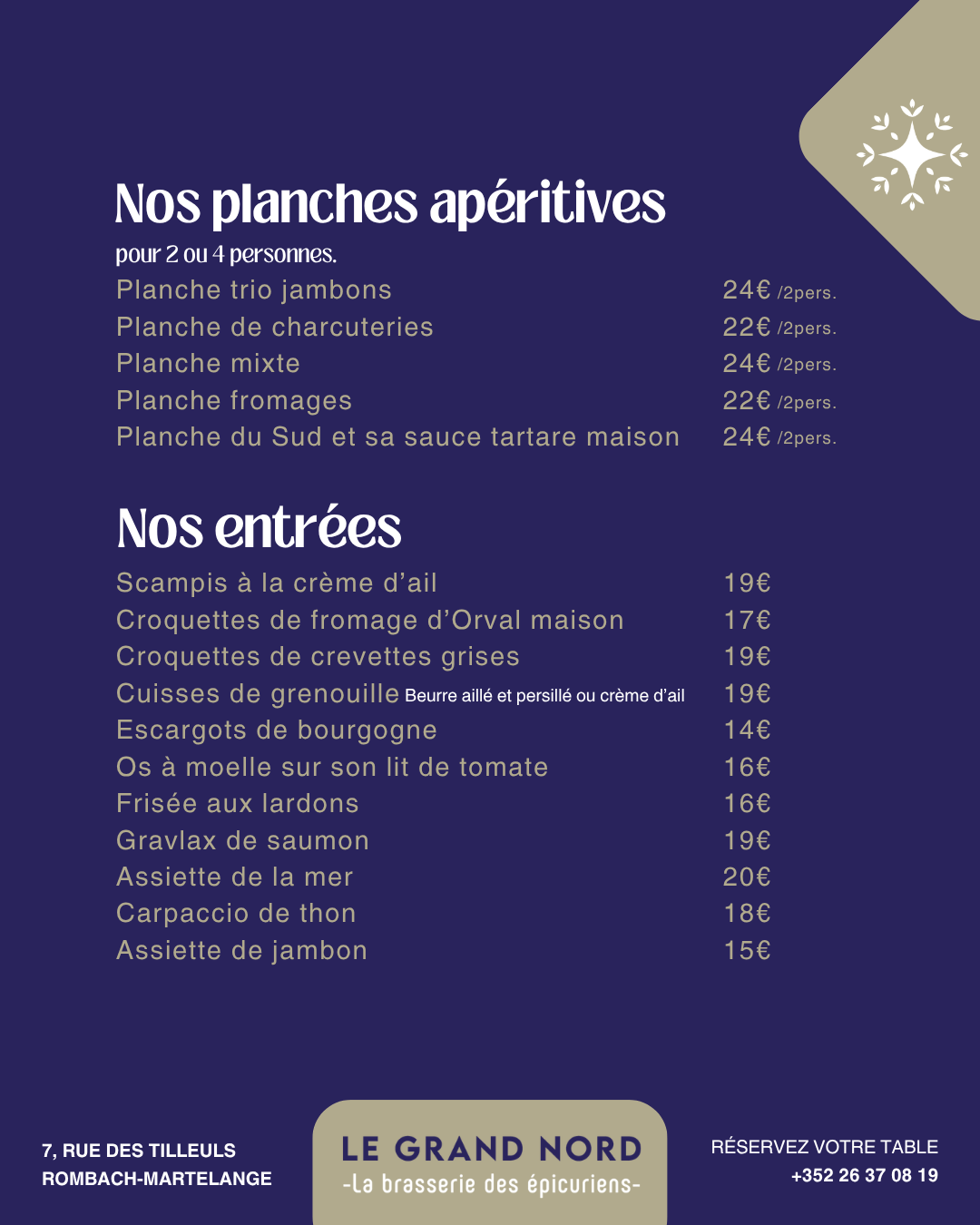 Que ce soit pour un déjeuner décontracté, un dîner raffiné ou simplement un moment autour d’un apéritif, le Grand Nord est l’adresse incontournable pour les amateurs de plaisirs culinaires. Pensez à réserver votre table et à venir découvrir notre carte qui change au gré des saisons et des inspirations du chef